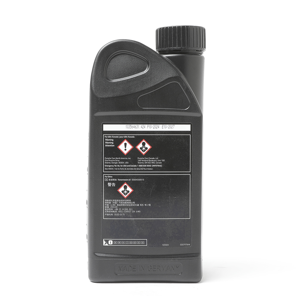 HUILE DE BOITE – PDK – BOITE DE VITESSES Porsche 00004330513 (ou 00004320729) installé sur les modèles 918 Spyder, 970 Panamera G1, 981 Boxster, 981 Cayman, 718 Boxster, 718 Cayman, 987 Boxster, 987 Cayman, 991, 991 Turbo, 997, 997 GT2-RS, 991 R, GT3 et GT3 RS, 992 GT3
